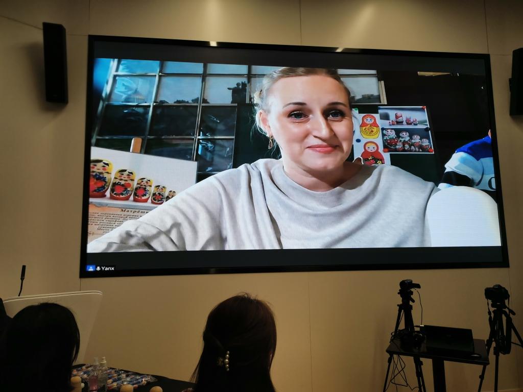 活动结束后,中央广播电视总台记者对beat365亚洲体育参与活动的研究生卢艺璇同学进行了采访。卢艺璇同学表示,她非常开心能够参加这次绘制套娃的活动,在俄罗斯老师的指导下画了这些可爱的套娃,从中体验到了套娃文化。作为冬奥会志愿者,她表示非常期待即将到来的北京冬奥会及冬残奥会——这对于每一位参与志愿服务的北外学子来说都是难得的人生体验以及莫大的荣幸。她将尽最大的努力做好服务工作,让所有来北京参加冬奥会的客人体验到宾至如归的感觉。